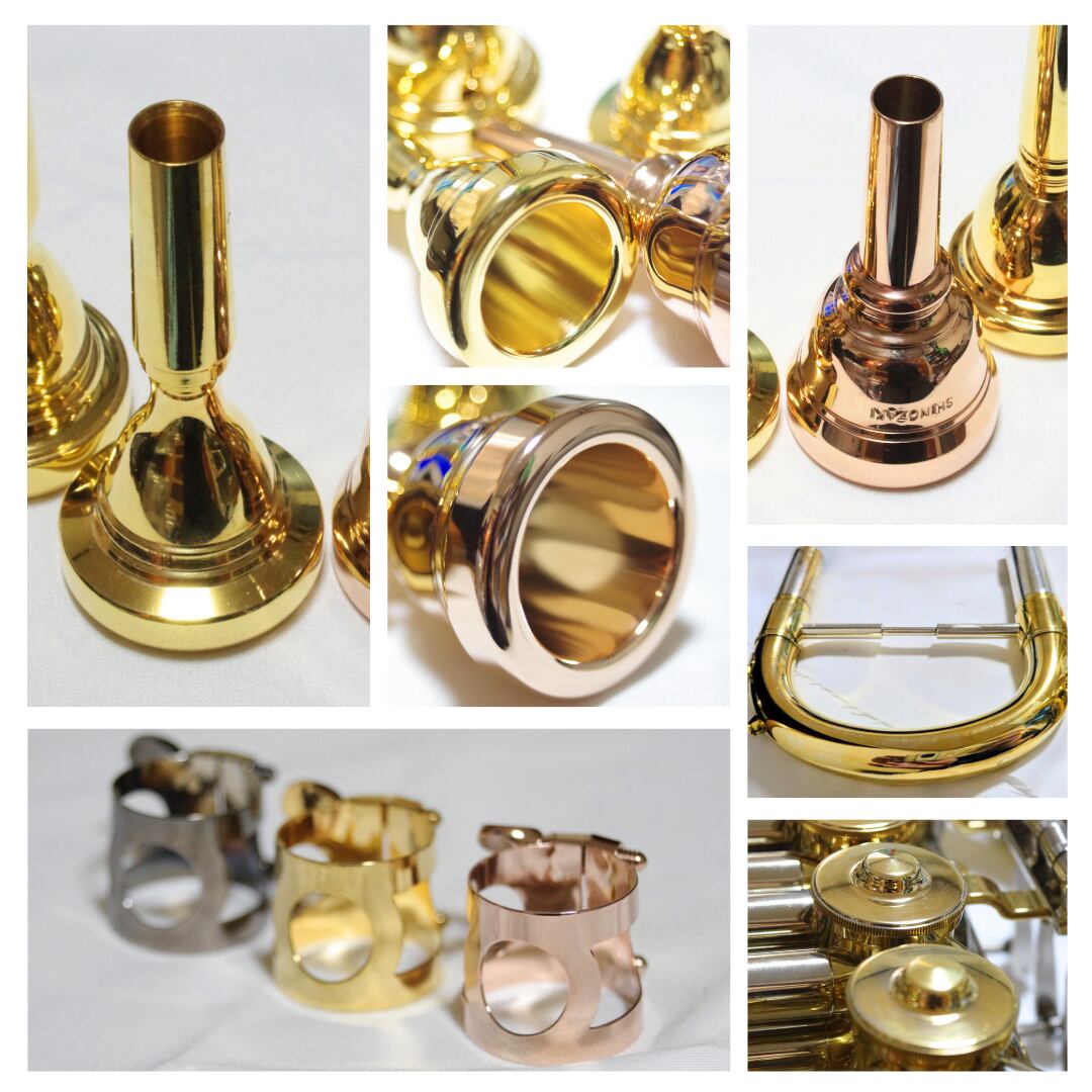 当方のメッキ加工は、トランペットで有名なシルキー氏の「素材による音響への影響」の科学的実証実験により、「メッキ」による音響への影響は無かったという実験結果を推し、音響への影響を目的としておりません。